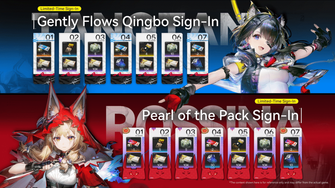Recompensas ampliadas: 10 Permissões de Recrutamento para iniciantes, eventos de login (“Gently Flows Qingbo”, “Pearl of the Pack”), Dia de Exploração, Treinamento de Sobrevivência, Cotas AIC retroativas e Kit de Gravação Multi Linha para builds endgame. Passe de Protocolo com Permissões periódicas.