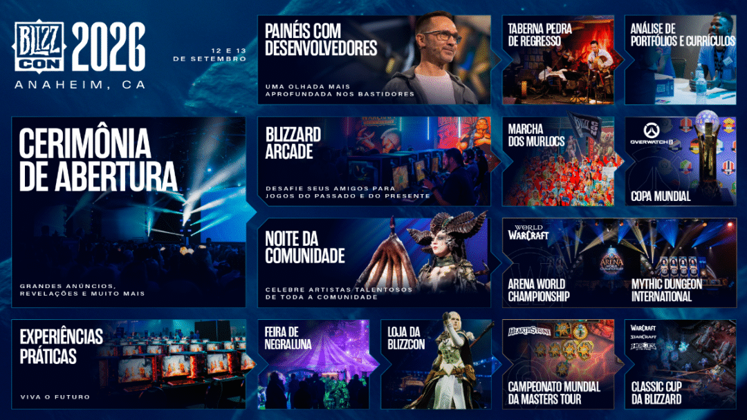 Em breve, mais detalhes sobre a programação, painéis, torneios de e-sports e atrações serão revelados, garantindo uma experiência inesquecível para a comunidade Blizzard em 2026.
