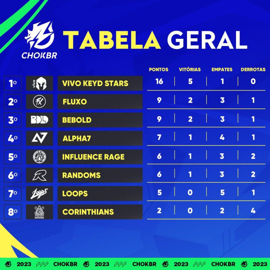 No sábado (26/08), o FLUXO e a Vivo Keyd Stars saíram vitoriosos, enquanto Alpha7, Be Bold, Corinthians E-sports e Loops Esports empataram, intensificando a competição.