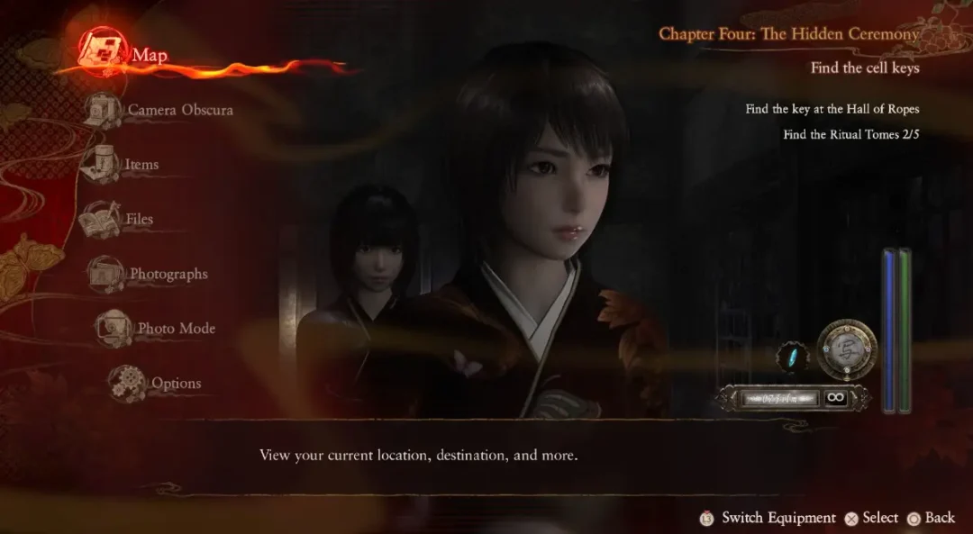 Gostei da narrativa, dos personagens, da ambientação, da trilha sonora; tenho zero reclamações quanto a esses elementos. Mas é preciso dizer, o game não tem localização para PT-BR, ou seja, se você tem dificuldade com outros idiomas, então não recomendo você jogar Fatal Frame 2, pois o game tem muitas idas e vindas e depende de cartas com informações, diálogos, cutscenes breves, mas que são recheadas de informações para você se situar sobre o que fazer e resolver os famosos enigmas (puzzles) que estão presentes no game, e entender a visão de mundo que o game quer te apresentar.