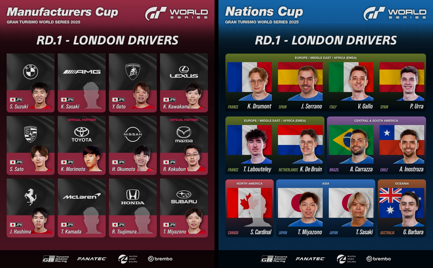 Na Manufacturers Cup, os 12 melhores da Ásia-Oceania aceleram por marcas como BMW, Toyota, Ferrari e Porsche. Já a Nations Cup traz nomes de peso, como Takuma Miyazono, Kylian Drumont, Jose Serrano e o novato Samuel Cardinal. O calendário segue com etapas em Berlim, Los Angeles e as finais mundiais em Fukuoka, Japão, em dezembro.