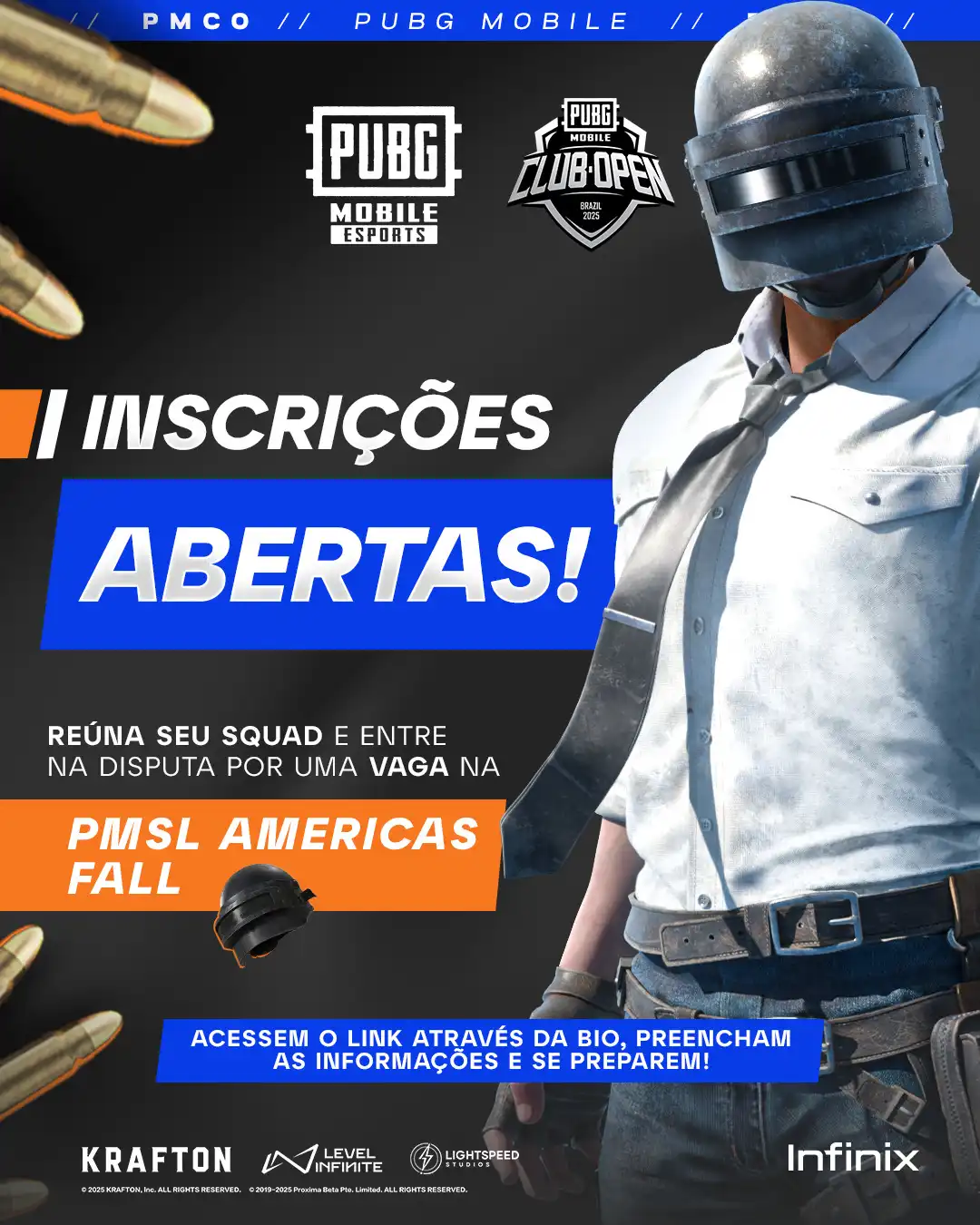 O PUBG MOBILE Club Open (PMCO) Fall 2025 está com inscrições abertas até 6 de agosto, proporcionando uma nova oportunidade para equipes amadoras e semiprofissionais entrarem no cenário competitivo. O torneio online ocorre de 8 a 17 de agosto e serve como porta de entrada direta para a elite, já que as três melhores equipes garantem vaga na PUBG MOBILE Super League Americas (PMSL).