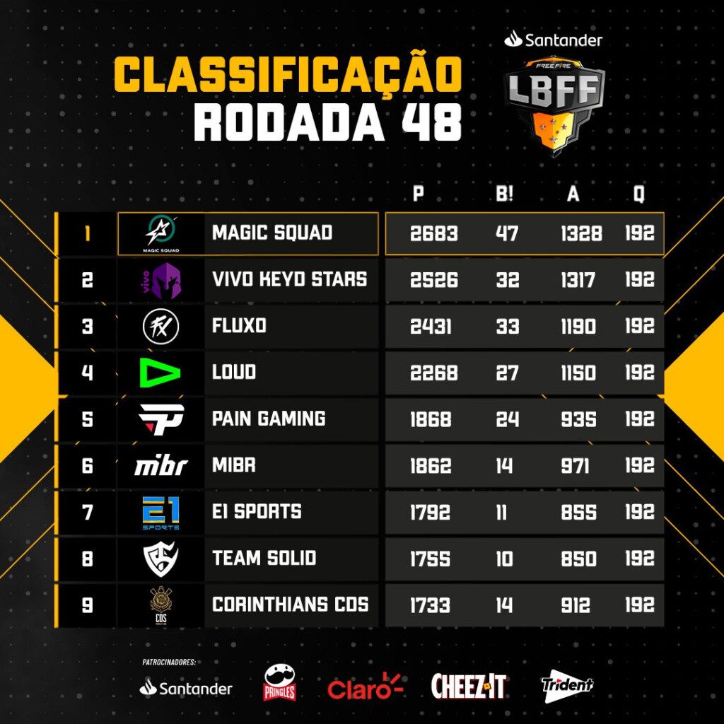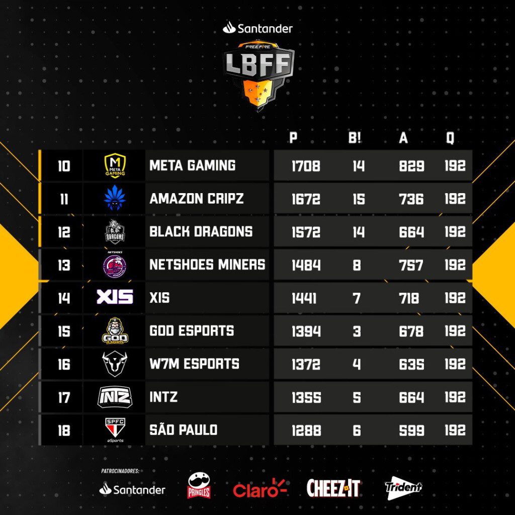 A segunda-feira (31) marcou o fim da fase de grupos, com a despedida da Netshoes Mineers, XIS, GOD Esports, W7M Esports, INTZ e São Paulo. Apesar de suas boas campanhas, essas equipes não conseguiram chegar ao top 12. A Magic Squad, por outro lado, já garantiu sua vaga no Mundial de Free Fire deste ano.