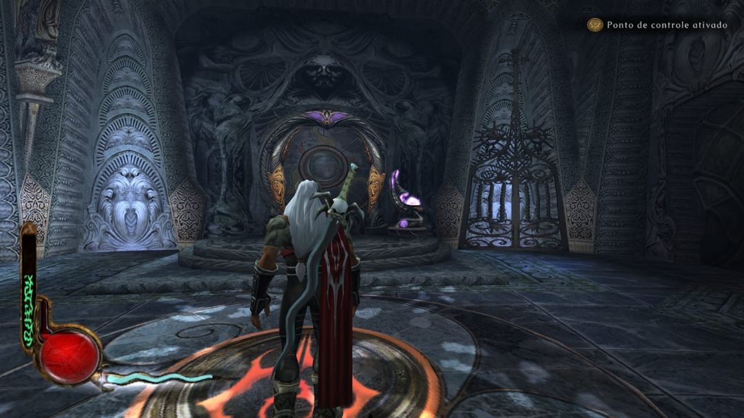 Uma das principais características do jogo é a alternância entre controlar Kain e Raziel, cada um com habilidades próprias. Essa troca ajuda a variar um pouco a forma como exploramos os cenários e enfrentamos os inimigos.