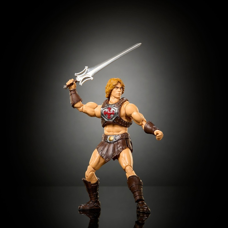Esta figura do He-Man oferece detalhes de nível de colecionador com um design fiel ao filme, apresentando a armadura e armas icônicas do herói, além das feições do ator Nicholas Galitzine. A figura foi construída para poses dinâmicas e exibição, contando com 30 pontos de articulação, mãos intercambiáveis e a lendária Espada do Poder.