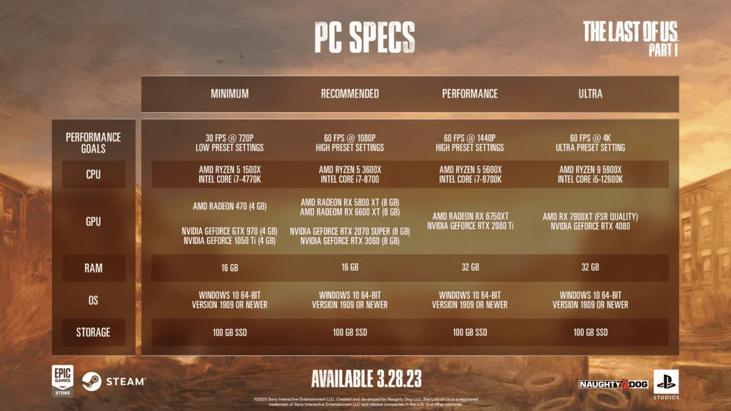 Se você pretende jogar The Last of Us Part 1 no PC, confira abaixo os requisitos mínimos divulgados pela Naughty Dog: