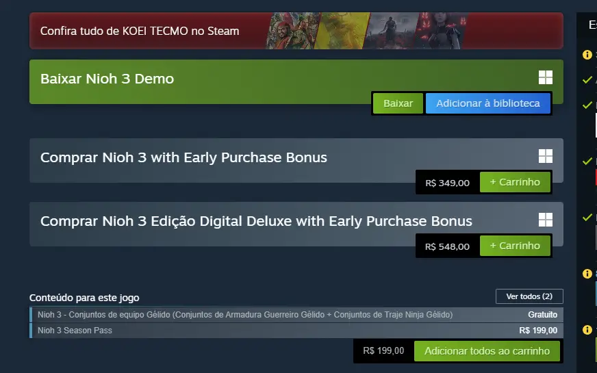O game custa R$ 349,00 na Steam em sua versão base e R$ 548,00 na versão Deluxe. São preços bem altos para a nossa realidade no Brasil, e isso precisa ser falado. Gostaria que a Koei tivesse isso em mente ao lançar seus conteúdos.