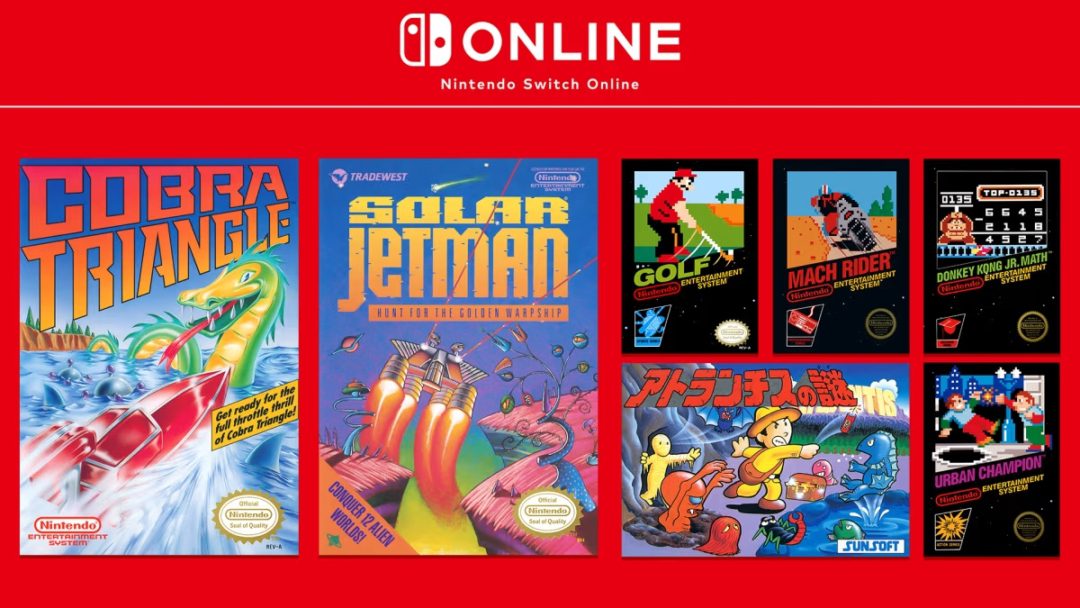 Para os amantes do NES, a lista de novidades inclui títulos memoráveis como Urban Champion, onde você enfrenta os lutadores mais durões da cidade; “Golf”, que exige estratégia para superar cada buraco; Donkey Kong Jr. Math, uma divertida maneira de praticar matemática com Junior; Mach Rider, um jogo de corrida e combate ambientado no ano 2112; The Mystery of Atlantis, onde você explora a mítica Atlântida; Solar Jetman, com a missão de recuperar peças de uma nave galáctica; e Cobra Triangle, que traz desafios aquáticos emocionantes.