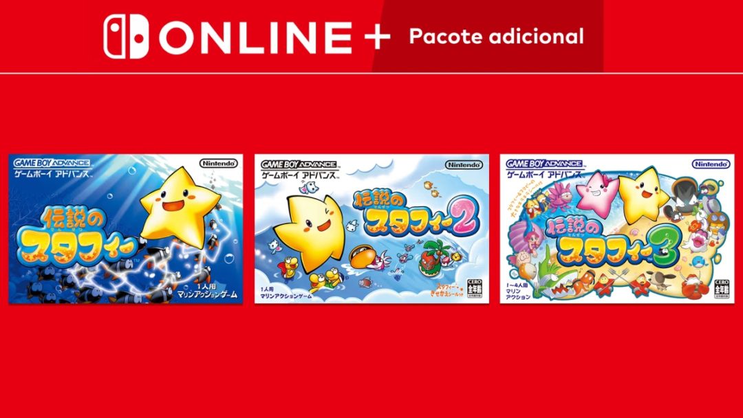 Já para os assinantes do Nintendo Switch Online + Pacote Adicional, a coletânea de Game Boy Advance agora inclui os três primeiros jogos da série Densetsu no Starfy. Acompanhe Starfy em suas aventuras subaquáticas, enfrentando desafios e salvando sua mãe raptada em histórias cheias de ação e diversão.