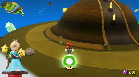 Bowser atacou o Festival das Estrelas, abduziu a princesa Peach e colocou a galáxia inteira em perigo! Junte-se à Rosalina e às Lumas, protetoras do cosmos, para restabelecer o Observatório de Cometas e resgatar a princesa. Use potenciadores como o cogumelo abelha para voar, o cogumelo Bu para flutuar e atravessar certos tipos de obstáculos e mais na sua jornada para recuperar as estrelas do poder!