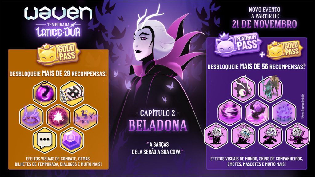 Hoje o jogo Waven, introduziu o segundo capítulo da temporada de Lance-Dur, trazendo a assustadora Beladona como nova adversária. Substituindo Cire Momore, Beladona desafia os jogadores na Ilha Competitiva, onde podem enfrentá-la diariamente através do portal temporal, até o dia 19 de dezembro.