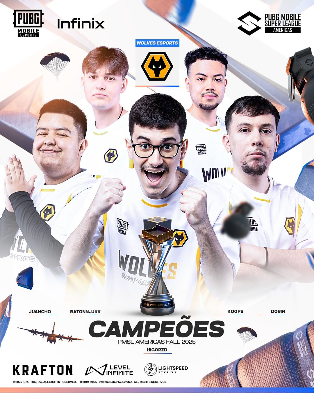 A Wolves Esports levantou o troféu da PUBG MOBILE Super League Americas Fall 2025 após disputas intensas entre as melhores equipes das Américas. A organização norte-americana conquistou sua primeira vitória na PMSL, faturando a maior parte dos US$ 200 mil em premiação e assegurando vaga para o PUBG MOBILE Global Championship 2025, que acontecerá na Tailândia em novembro.